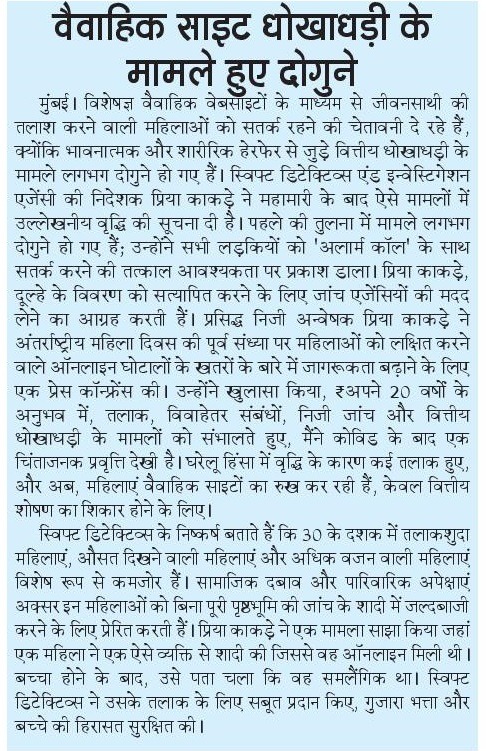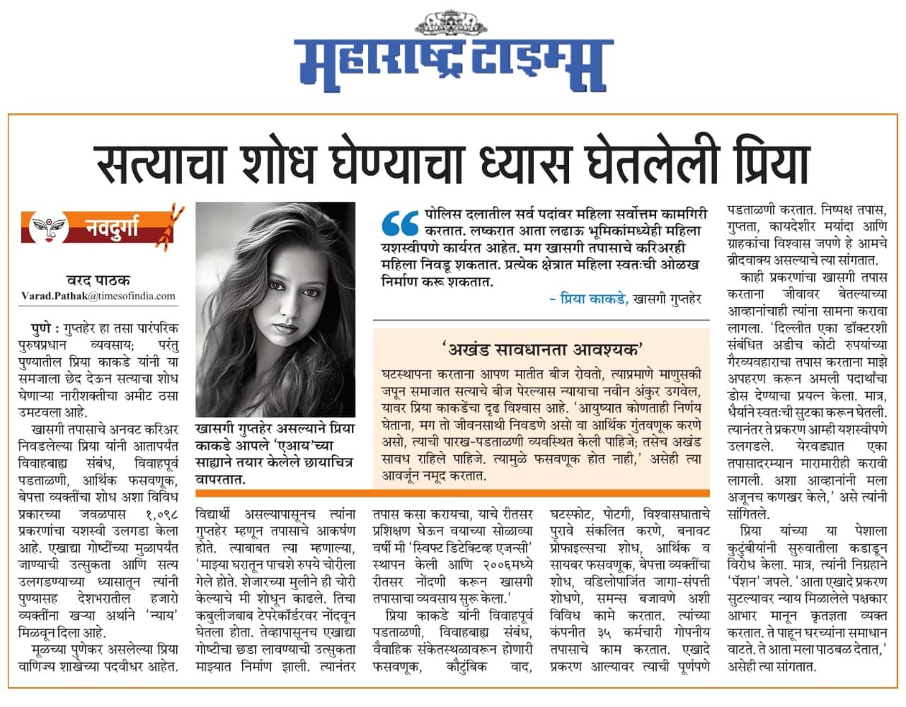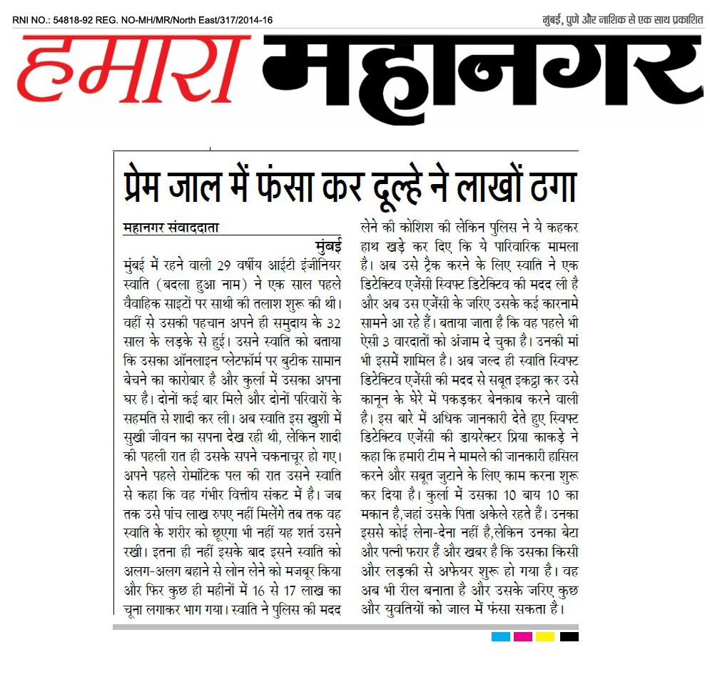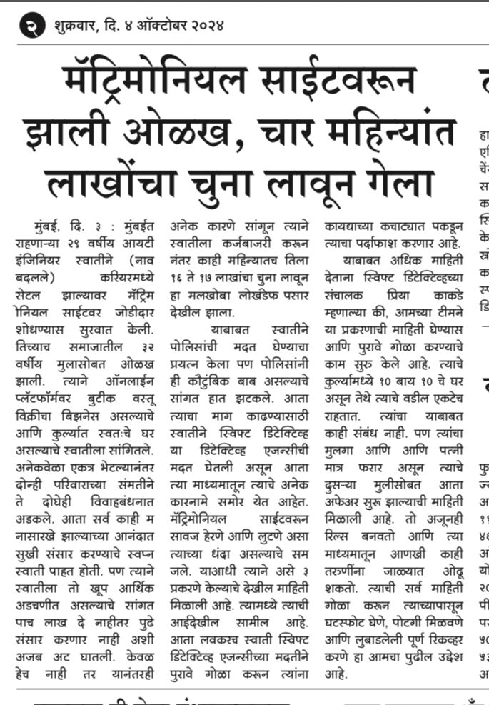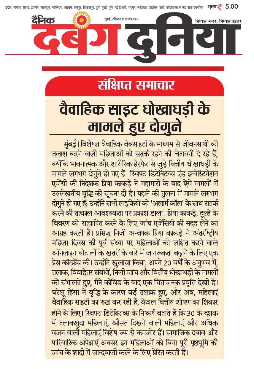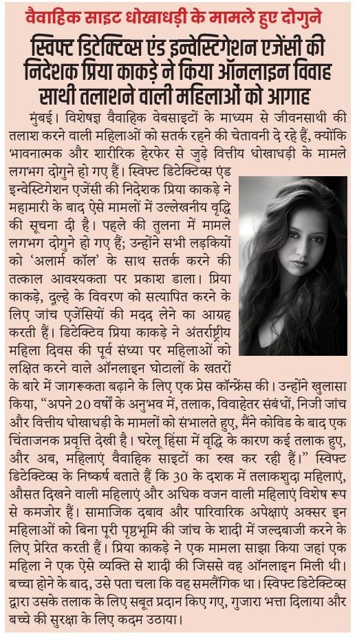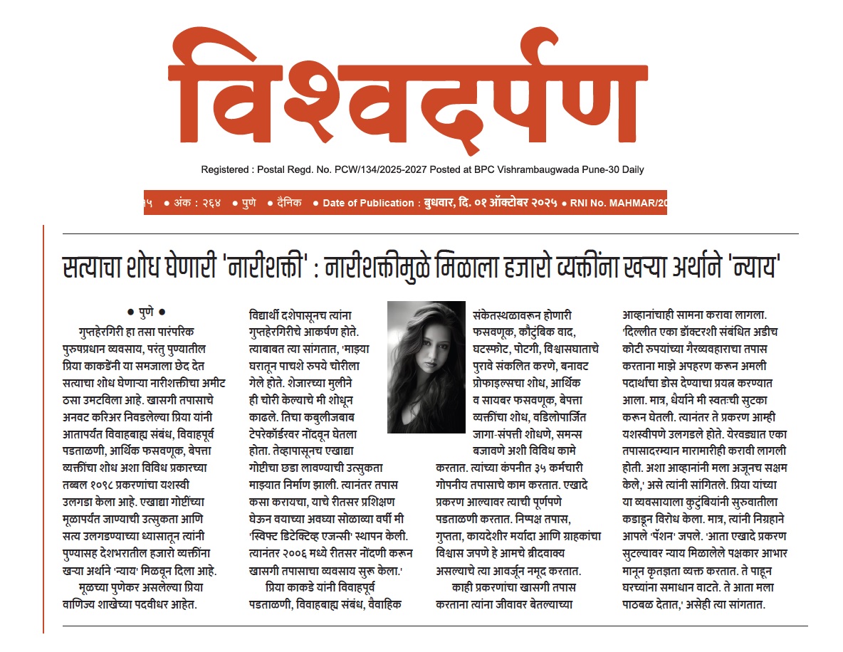 Welcome to Swift Detective Investigator, your trusted partner in the world of private investigations. Based in the bustling city of Pune, we extend our unwavering commitment to providing professional investigative services. With a team of dedicated and experienced professionals, we are dedicated to uncovering the truth and delivering unparalleled results for our clients.